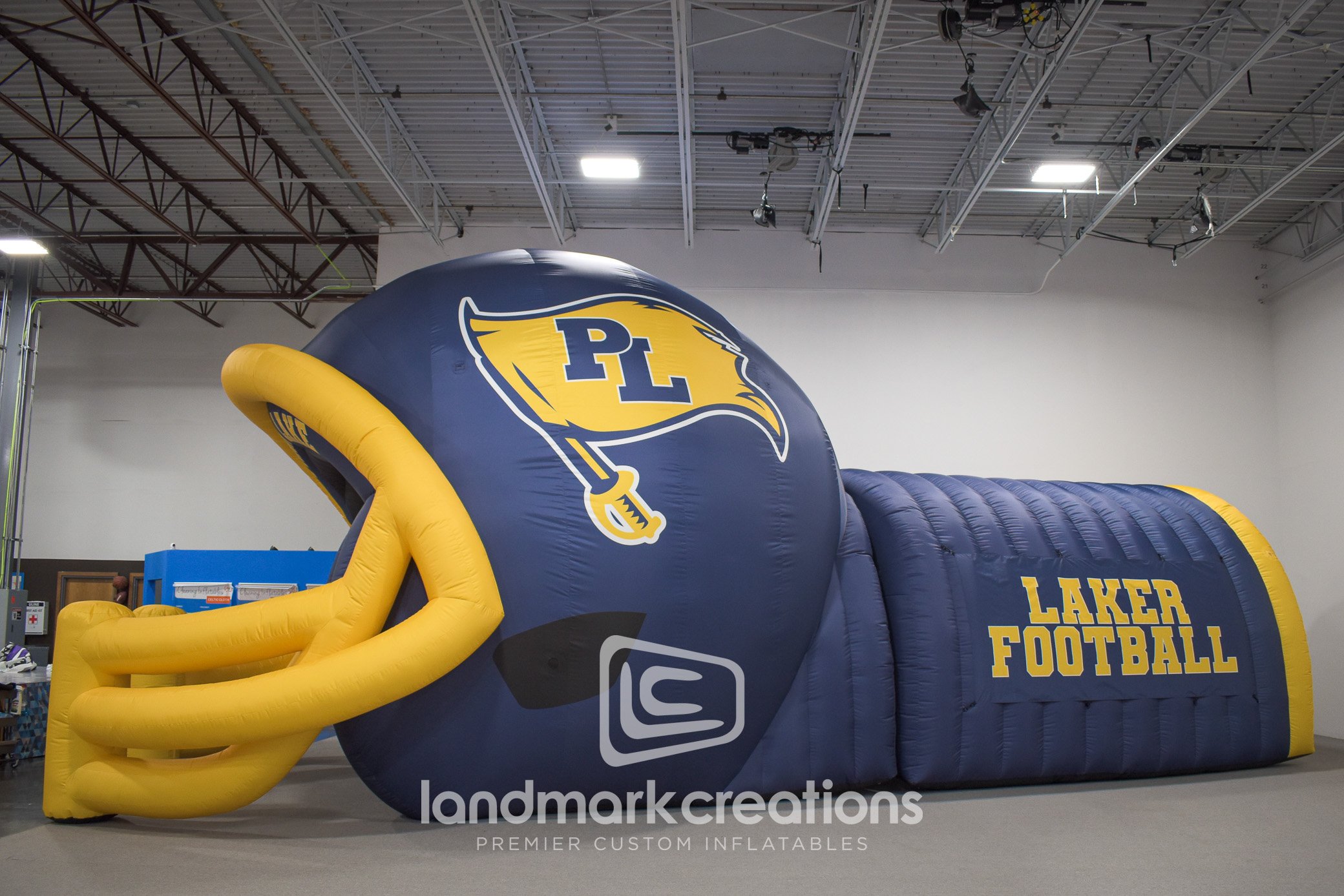 The Lakers enter the football field in style thanks to their custom inflatable football helmet from the Prior Lake Touchdown Club. Custom inflatables score big time at sporting events because they boost team spirit while being easy to set up and store between games.
