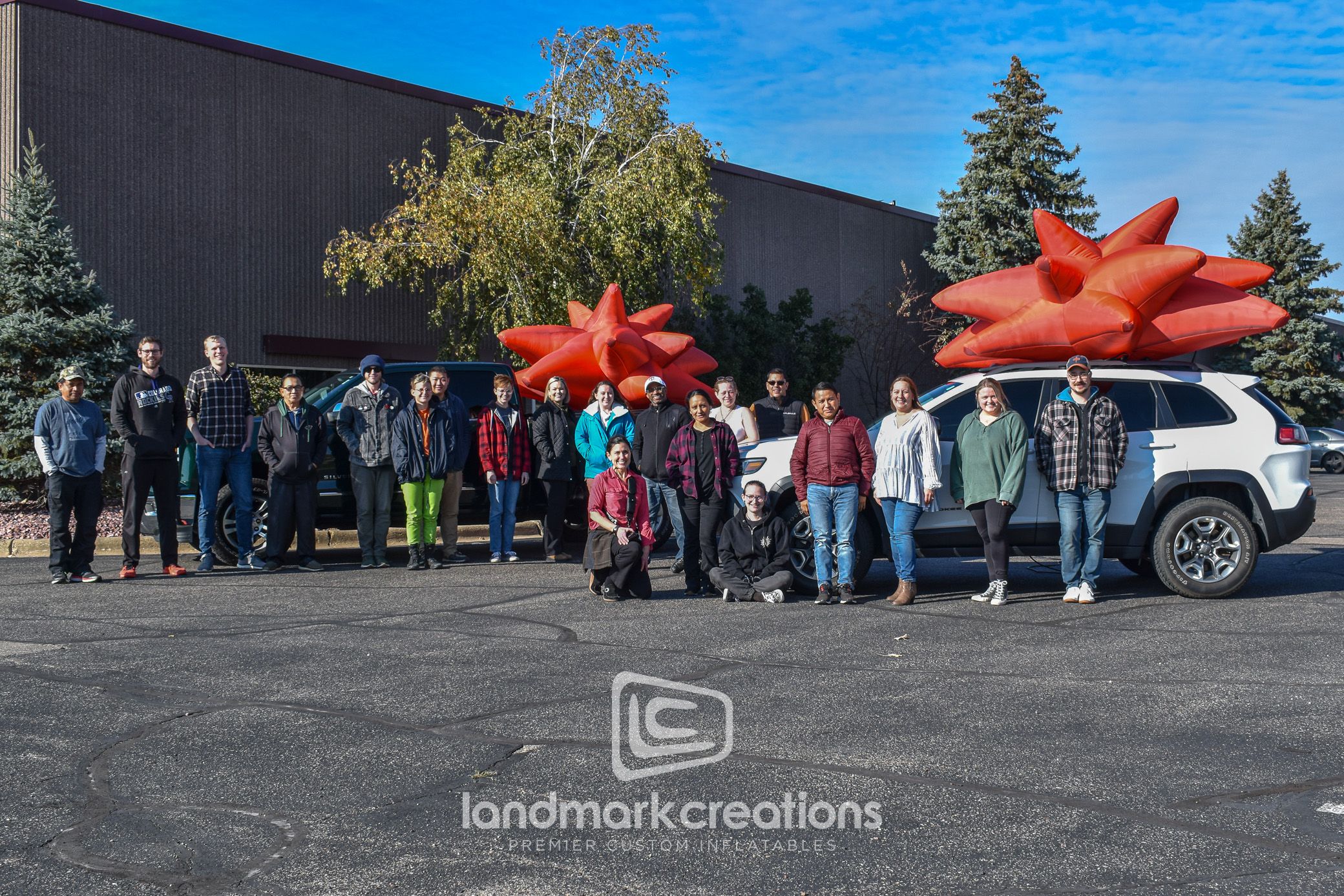 TBD Marketing Group collaborated with Landmark Creations to design an eye-catching inflatable red ribbon, perfect for promotional trucks. Measuring 4 x 6 x 10 feet, this vibrant inflatable transforms vehicles into mobile marketing displays, drawing attention during events and campaigns. Designed with accessible zippers for convenience and compatibility with vehicle mounts, this ribbon offers a dynamic branding solution for event planners and ad agencies seeking memorable displays. Showcase your brand in a bold and festive way with this custom inflatable.