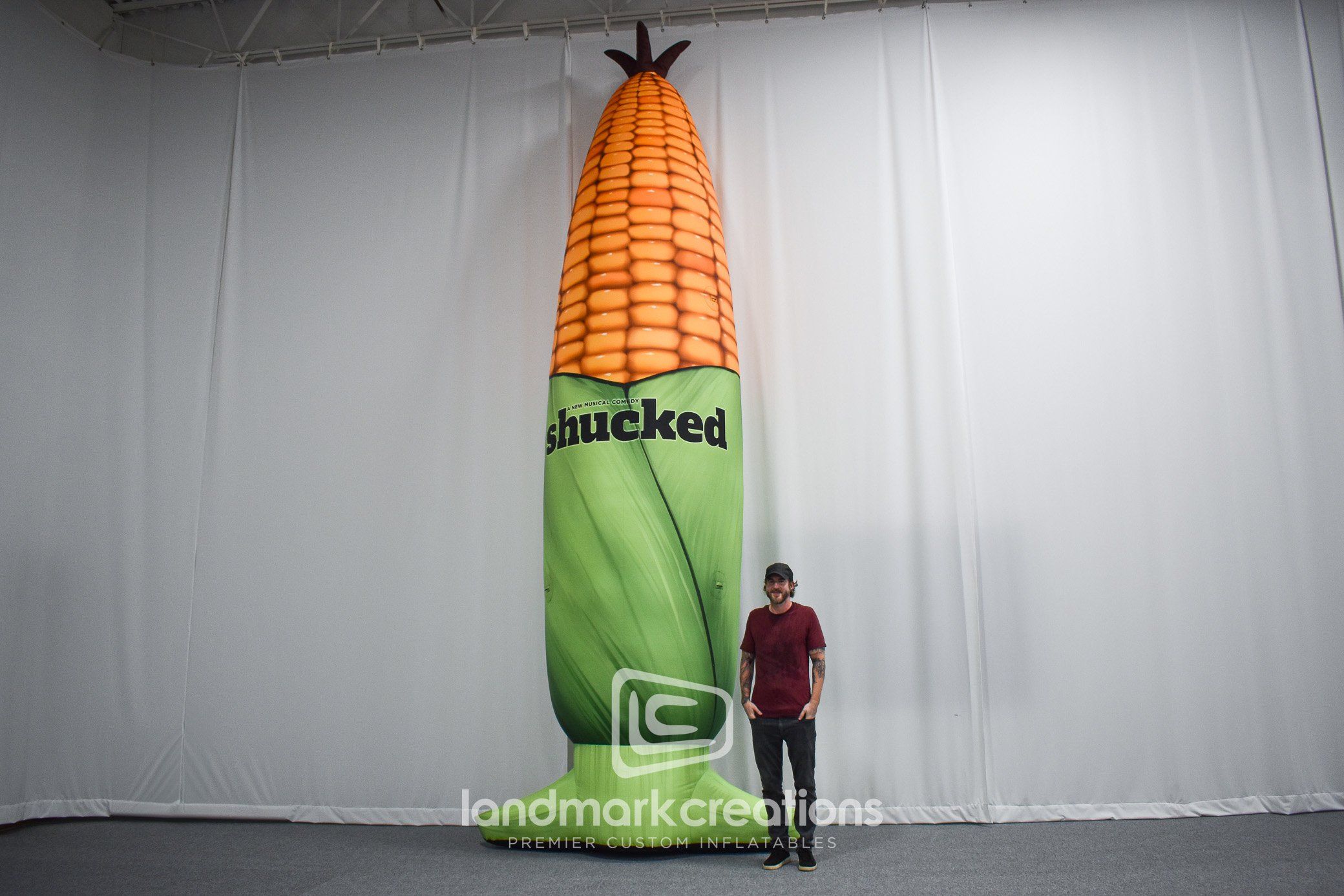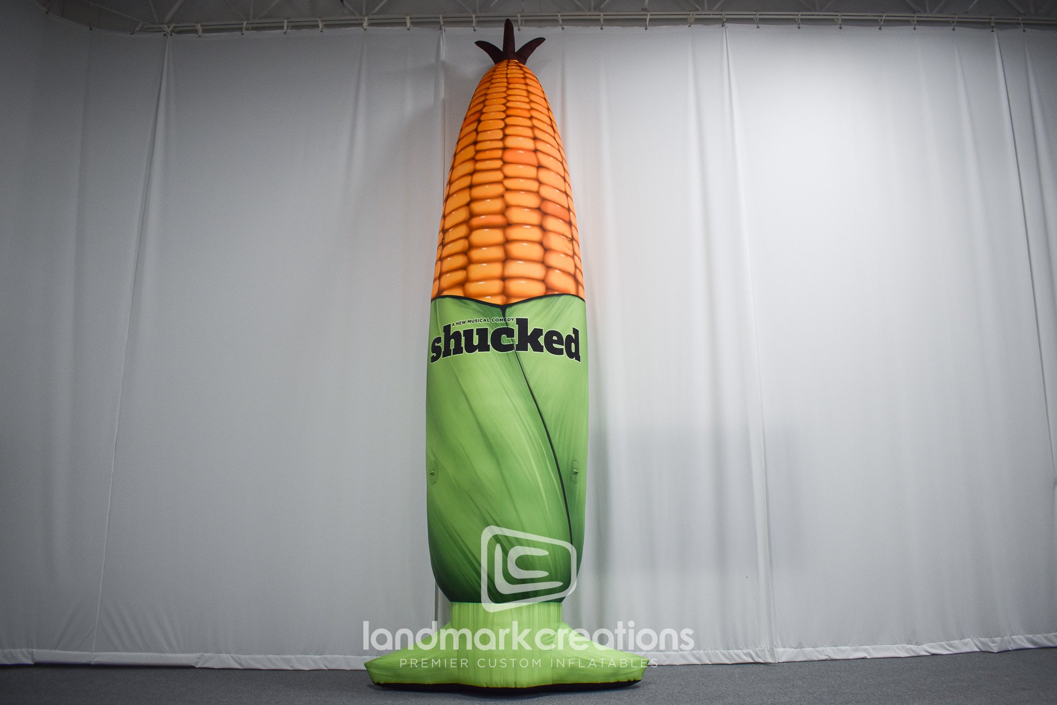 This impressive 20-foot custom inflatable corn replica, complete with intricate 3D kernels and realistic detailing, was designed for a theatrical marquee in Richmond, VA. Crafted by Landmark Creations for the Nederlander National Markets, it highlights our expertise in creating high-quality inflatable food replicas for special events and visual marketing.