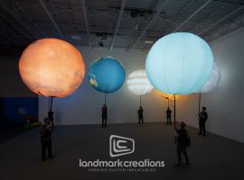 The team at Derse worked with Landmark to create a giant inflatable Earth display for Louisiana Pacific to use at the International Builders' Show. The custom inflatable planet was hung as the centerpiece in the organization's booth and created a stunning visual for visitors as it rotated overhead.