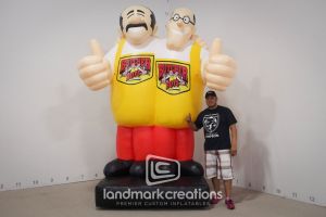 This is what most people think of when inflatables come to mind. Available in custom sizes and designs, cold-air inflatables can be mounted on the ground, on rooftops, indoors or at any fixed location. They inflate with the aid of a blower system in just minutes bringing your product replica, mascot, logo or sports tunnel to life.