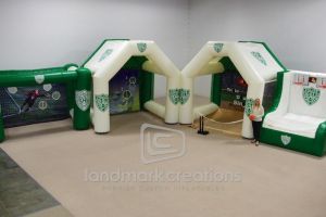 This is what most people think of when inflatables come to mind. Available in custom sizes and designs, cold-air inflatables can be mounted on the ground, on rooftops, indoors or at any fixed location. They inflate with the aid of a blower system in just minutes bringing your product replica, mascot, logo or sports tunnel to life.