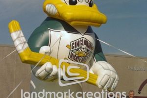 Our talented design team meticulously recreates your mascot's likeness, crafting inflatables from durable vinyl-coated nylon in various weights to suit your needs. Standing up to 70 feet tall, these cold-air inflatables are perfect for outdoor events, quickly inflating and securely tethering to the ground for stability.