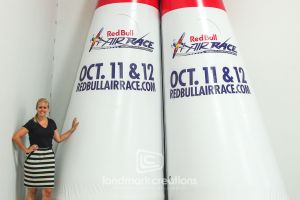 When you require something that gets the attention of people in action, custom inflatable pylons answer the call. Similar to the air gates used during the 2009 Red Bull Air Games, inflatable buoys highlight goals at sporting events, protect the public at beaches, mark water hazards on golf courses, and more. Lightweight and portable, inflatable markers from Landmark Creations give you the ultimate in flexibility.