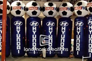 When you require something that gets the attention of people in action, custom inflatable pylons answer the call. Similar to the air gates used during the 2009 Red Bull Air Games, inflatable buoys highlight goals at sporting events, protect the public at beaches, mark water hazards on golf courses, and more. Lightweight and portable, inflatable markers from Landmark Creations give you the ultimate in flexibility.