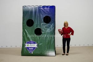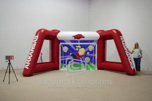 Whether you are looking for the classic A-style inflatable football toss or want to turn your product into a mobile throw station inflatable sports tosses help you score points with sports fans! Inflatable football tosses and throw stations are great for entertaining fans at pre and post-game events, attracting attention at tailgating parties and adding excitement to end zone competitions.