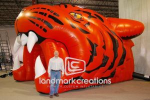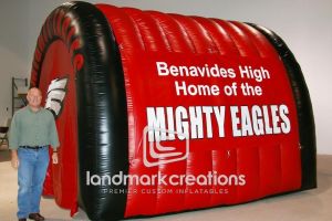 Landmark Creations can build custom inflatable tunnels specifically for you using your mascot, school colors, or theme.
