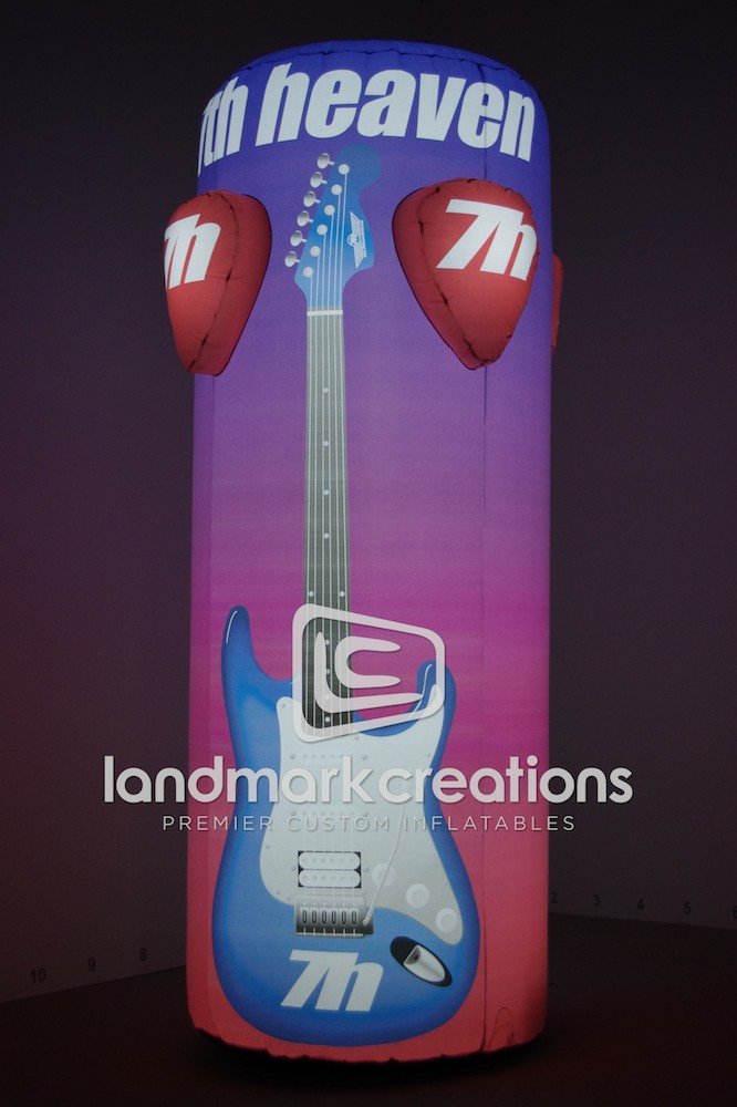 Cover band 7th Heaven uses their custom inflatable pylon at concerts and live shows. This internally lit inflatable pylon features digitally printed electric guitars and guitar picks adding a strong visual to both day and night events.