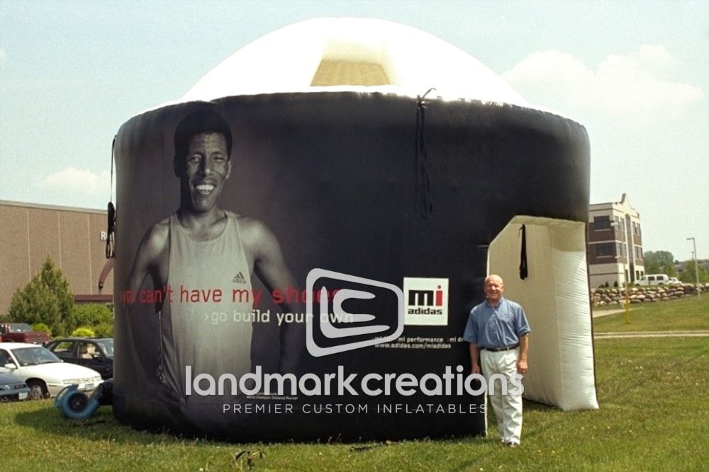 The Adidas display dome is a striking inflatable structure designed for sports events and marketing campaigns. Its versatile design provides a functional and visually captivating space for brand activations.