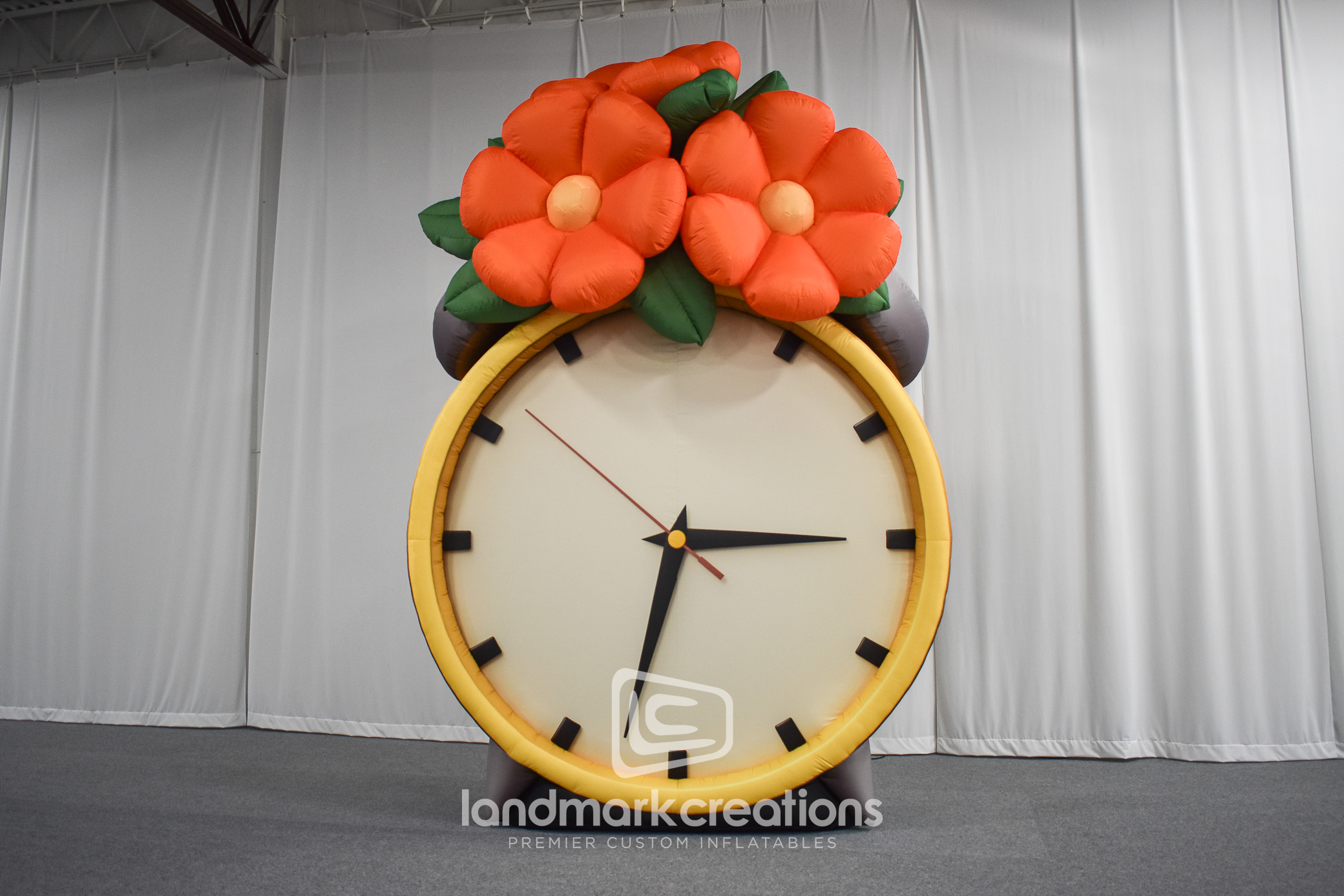 Landmark Creations collaborated with Art Production Fund to design a whimsical inflatable alarm clock blooming with oversized California poppies. Displayed outdoors at Frieze LA in Santa Monica, the 16-foot installation merged everyday imagery with natural elements to spark curiosity and conversation. Serving as a bold visual centerpiece, this inflatable art piece invited festival-goers to pause, reflect, and experience art in unexpected ways.