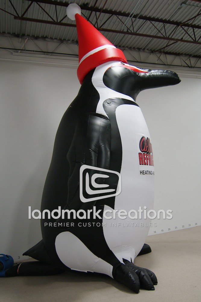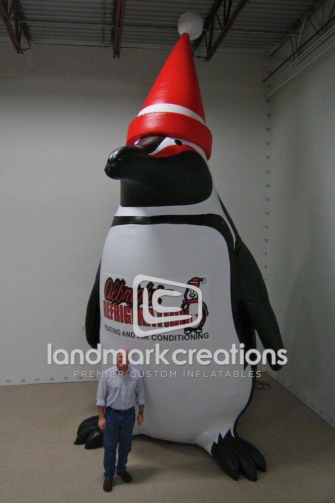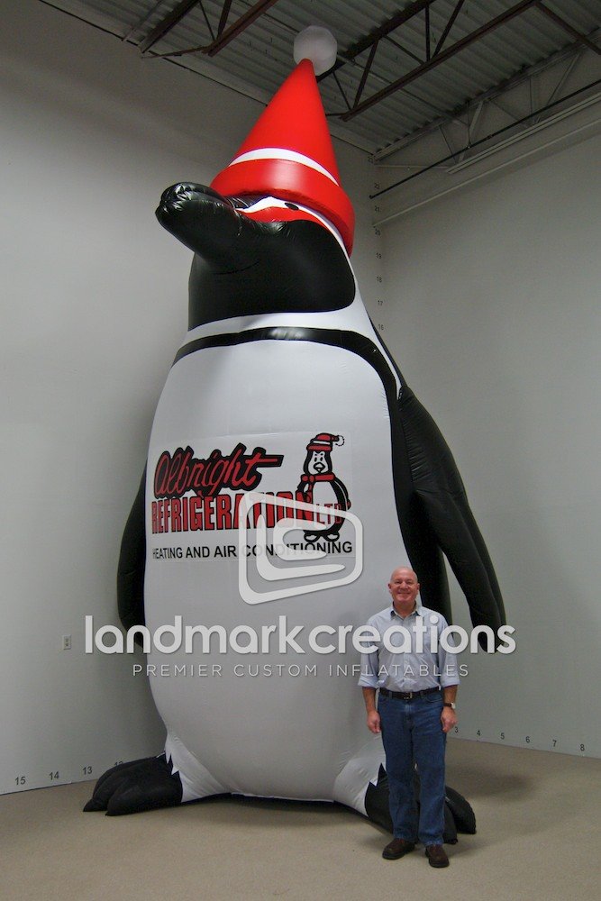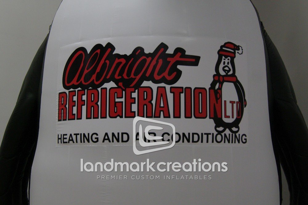 Giant inflatable penguins are great for promoting heating and air businesses, winter events and more. Albright Refrigeration's giant penguin, with his friendly expression and tasseled hat, gets attention and warms hearts.