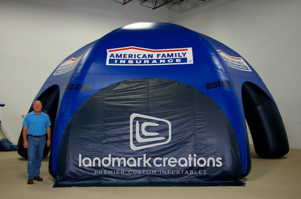 Inflatable tents provide strong visuals and add functionality to your marketing mix. The American Family Insurance tent uses its large size and colorful logo to attract visitors, distribute information and collect leads.