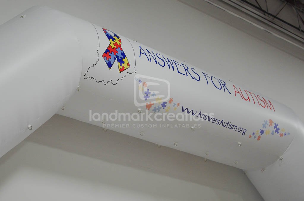 Looking for a way to make your charity event more memorable? Answers For Autism used a custom inflatable arch to display their logo and website at the start and finish line at race events.