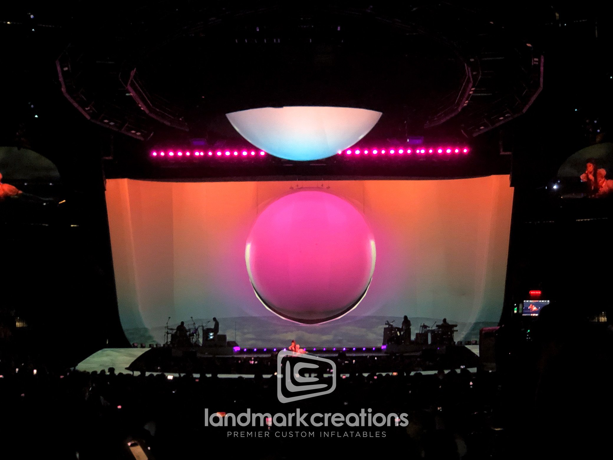 Landmark Creations partnered with TAIT Towers to create a custom inflatable stage set for Ariana Grande’s 2019 concert tour. This 30x30x15 ft inflatable set piece, featuring a reflective back side for dynamic lighting effects, captivated audiences and added an unforgettable visual element to the production. Designed for stage producers and tour managers, our inflatables bring creativity and engineering to life for live performances.