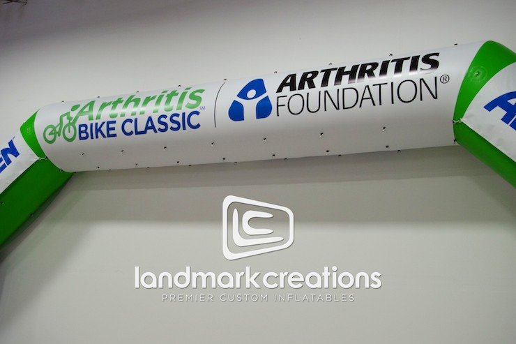 This custom inflatable arch was designed for The California Coast Classic Bicycle Tour, a 525 mile scenic bike ride that benefits the Arthritis Foundation. Funds raised by the event are donated to find a cure for arthritis.