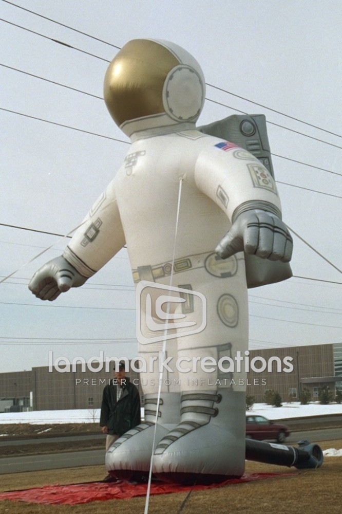 He's out of this world! This massive inflatable space man with custom-painted details is perfect for attracting crowds to sci-fi, science and technology related museums or events.
