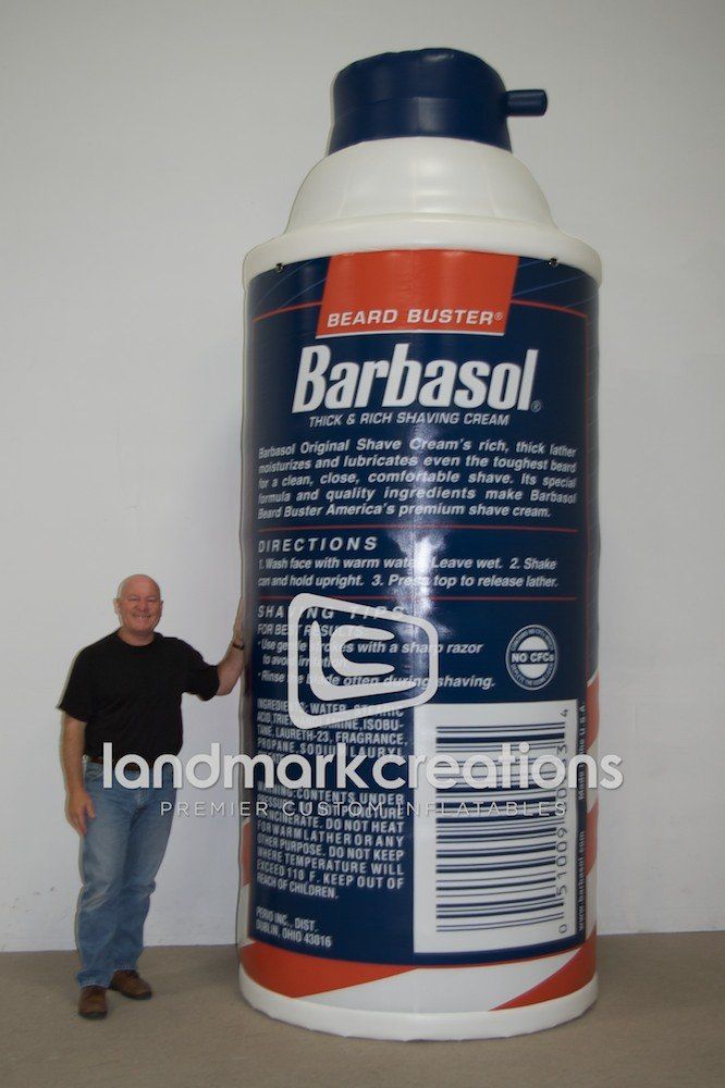 This custom inflatable Barbasol replica was used to direct traffic to a new manufacturing plant in Ohio. This inflatable welcomed the media, city officials and company officers to the new location.