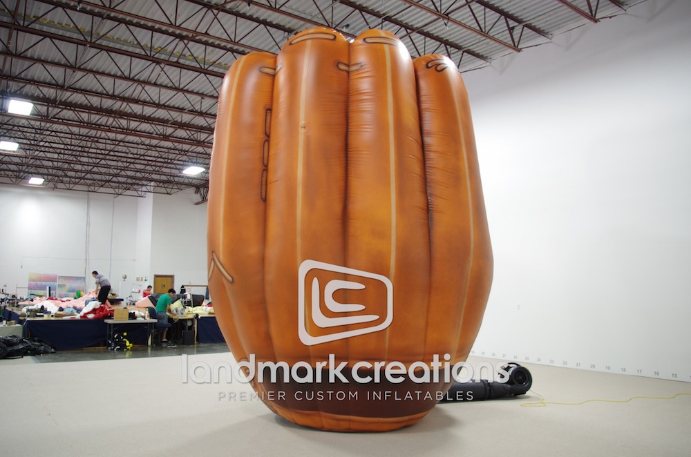 The Iowa Cubs, a minor league baseball team, use this giant inflatable baseball glove to get fans excited at Principal Park in Des Moines.