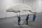 This custom inflatable Beluga Whale, Juno, was designed for Mystic Aquarium's parade display. At 20 feet in length, it is supported by up to six people, bringing a captivating marine presence to events. This unique parade balloon reflects our commitment to creating lifelike, larger-than-life inflatables for museums, aquariums, and zoos, helping raise awareness for ocean conservation.