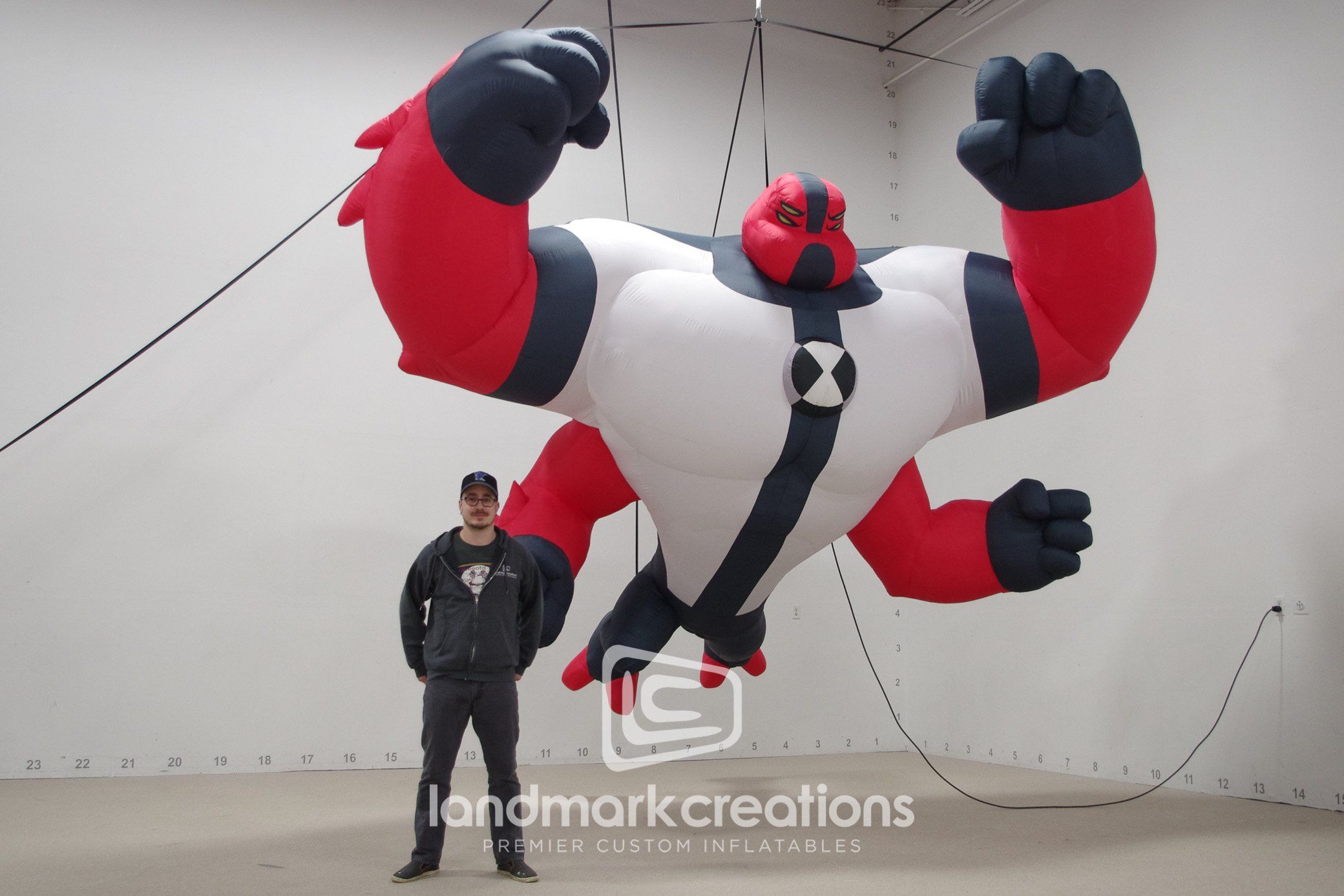 The animated character ‘Four Arms’ inflatable mascot did what it was supposed to do: get people’s attention! The unique inflatable was hard to miss as it was suspended from above.