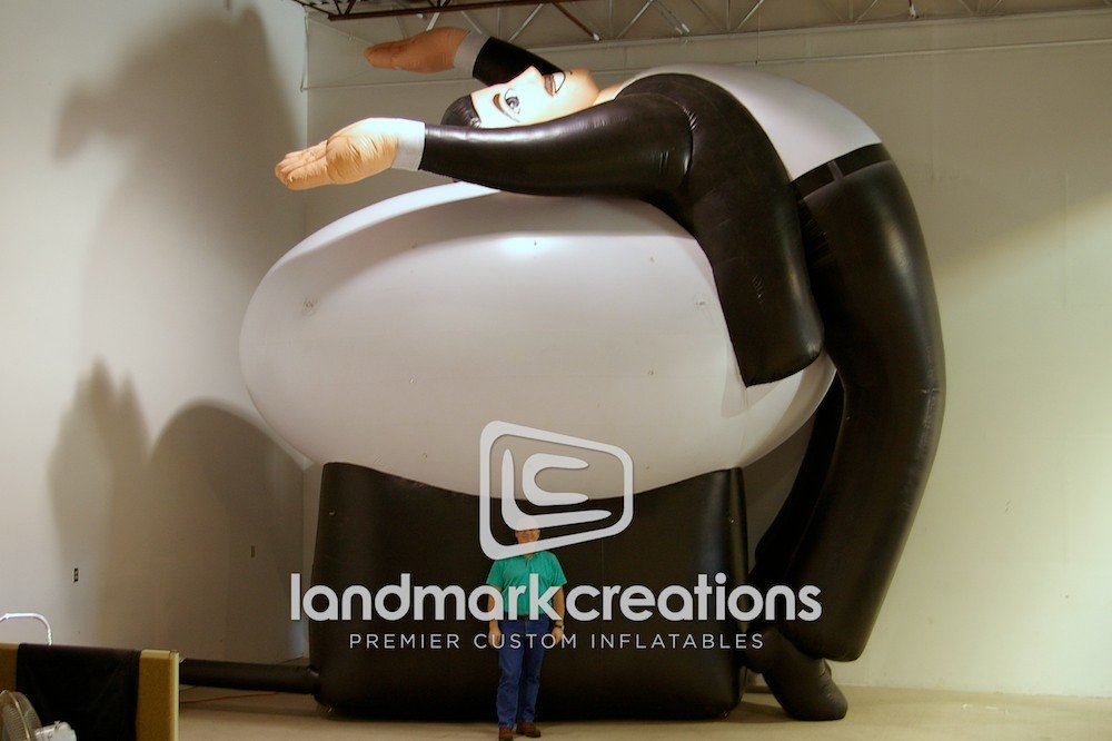 Drive home marketing messages and metaphors with giant visuals. This inflatable Ben Dover Backwards mascot was used to attract attention and send the message "We will bend over backwards to help you."