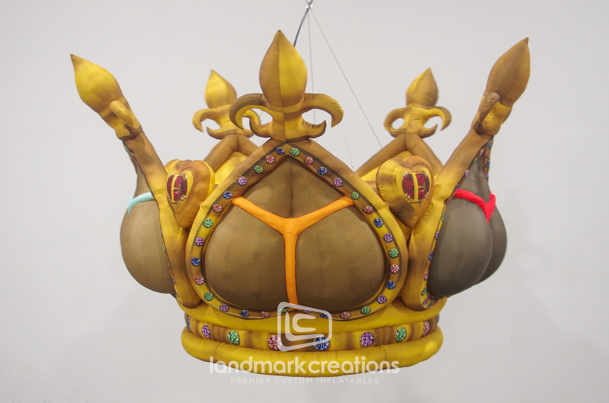 Big Freedia and The Suffers, two renowned music acts, performed at the House of Blues in New Orleans in 2020 and incorporated a custom inflatable crown booty as a set piece on stage. The custom inflatable crown, featuring vibrantly colors thongs and intricate details, added an element of zany grandeur and majesty to their performances, creating a unique and memorable visual experience for the audience. Following the success of the House of Blues performance, both Big Freedia and The Suffers incorporated the custom inflatable crown into their performances at various events and venues. The crown was easy to set up and take down, making it a convenient option for touring and traveling to different venues, as is the case with most custom inflatables.