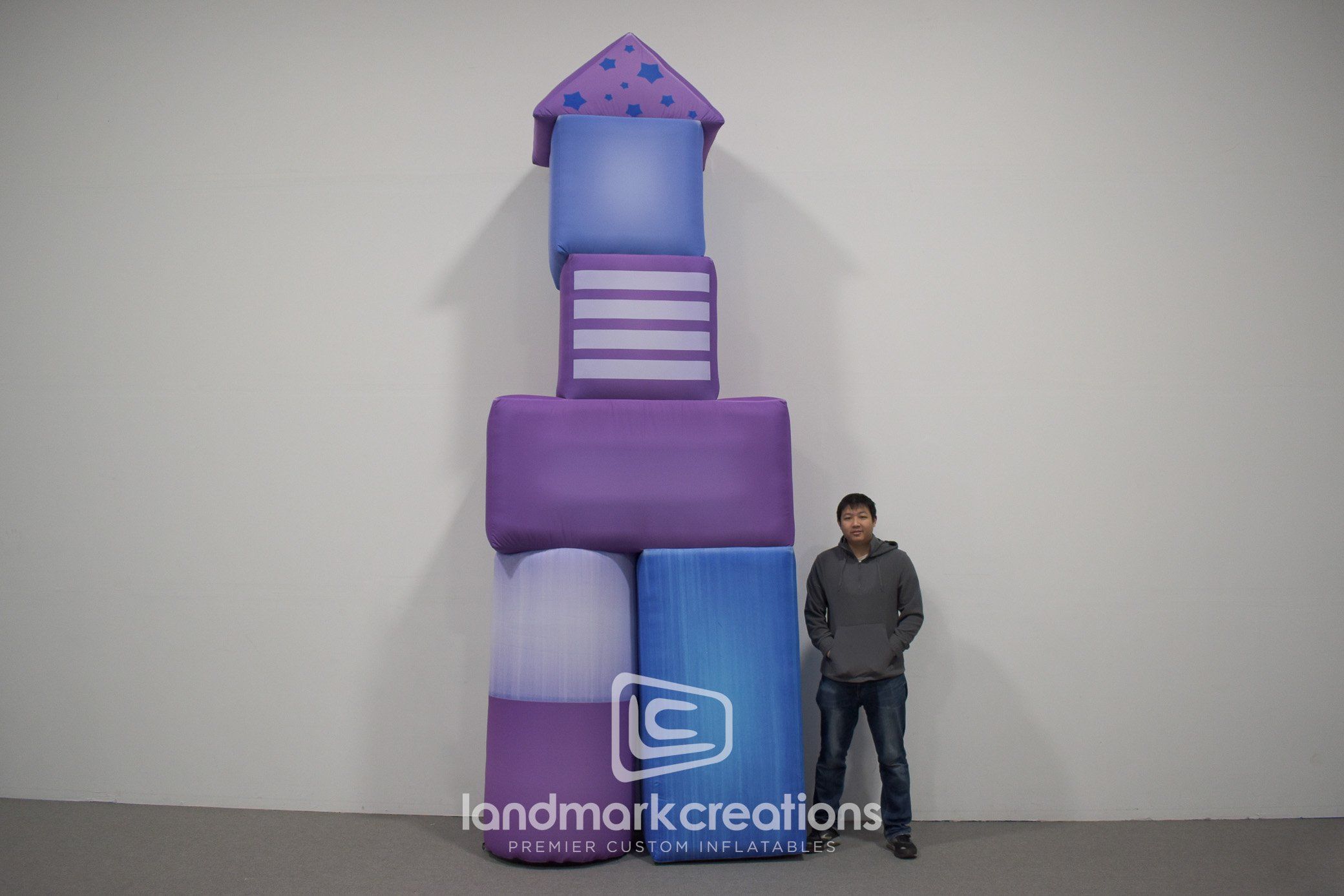 This custom inflatable block tower display was a set piece for the Little Baby Bum Live! event. Custom inflatables can be made in any shape, size, or artistic style and they can be crafted with features to ensure they'll perform well for live events or televised performances.