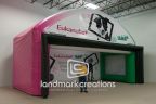 Increase visibility with an inflatable booth like the one made for Eukanuba and Iams. pet food brands. With a generous area for giving away product samples, this booth was a big hit by owners and their pets.