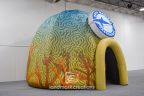 Landmark Creations partnered with Mote Marine Laboratory & Aquarium to create a stunning Brain Coral Tent inflatable. This 15 x 19 x 19-foot dome, inspired by Florida’s native coral reefs, features detailed flat art depicting staghorn coral and a dimensional logo to reflect Mote’s conservation-focused mission. With a 10-foot interior height, this inflatable is designed to fit standard exhibit halls, making it an engaging, portable solution for educational tours and museum events. Perfect for promoting marine biodiversity and sustainability, this inflatable dome brings the ocean’s beauty to life.