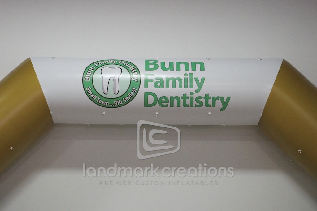 Bunn Family Dentistry inflates this custom race archway for their Bunn Fun Run! Participants start the 5K run at the large inflatable archway, and proceeds from the race fund future recreational facilities in the community.