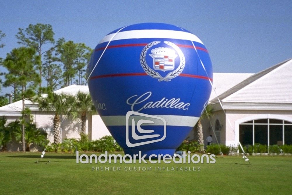 This giant inflatable hot air shape, featuring the Cadillac crest and logo in metallic fabrics, was used to create a festive yet luxurious visual at Cadillac corporate events.