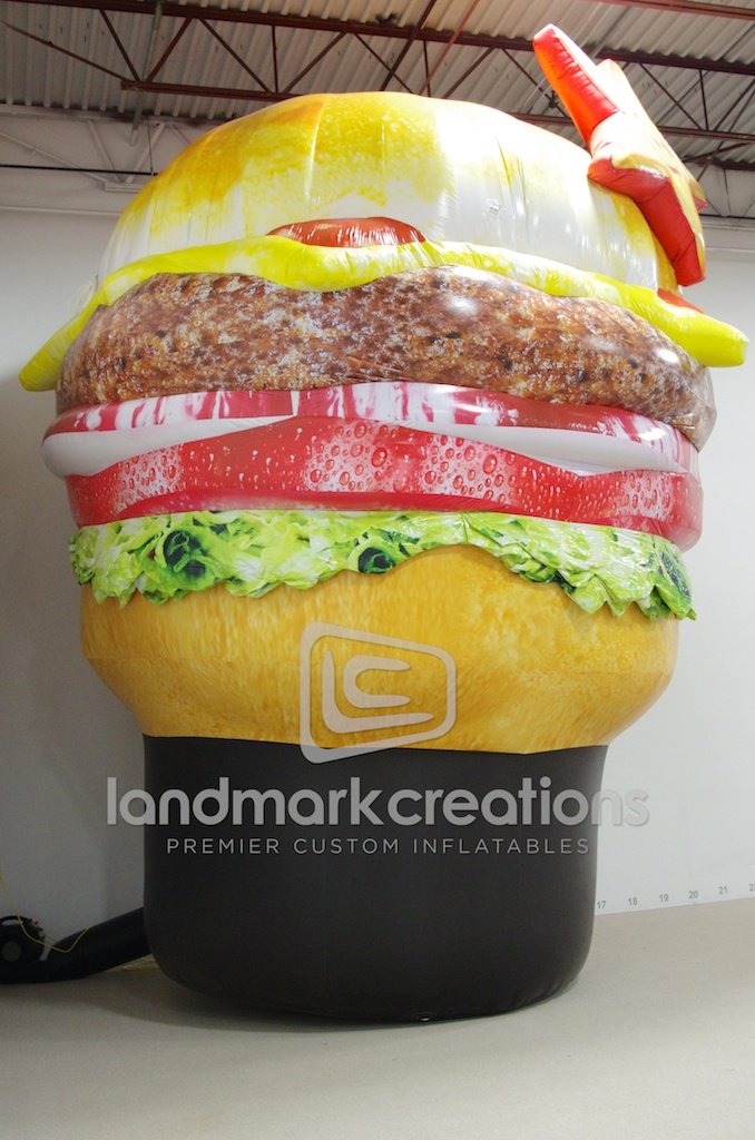 Customers will be in awe when they see a massive inflatable product replica on restaurant rooftops. This giant inflatable hamburger for Carl's Jr. looks good enough to eat.