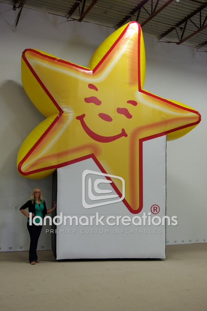 Custom inflatable billboards like this giant star for Carl's Jr. Restaurants increase restaurant traffic and brand recognition because they can be seen from far and wide.