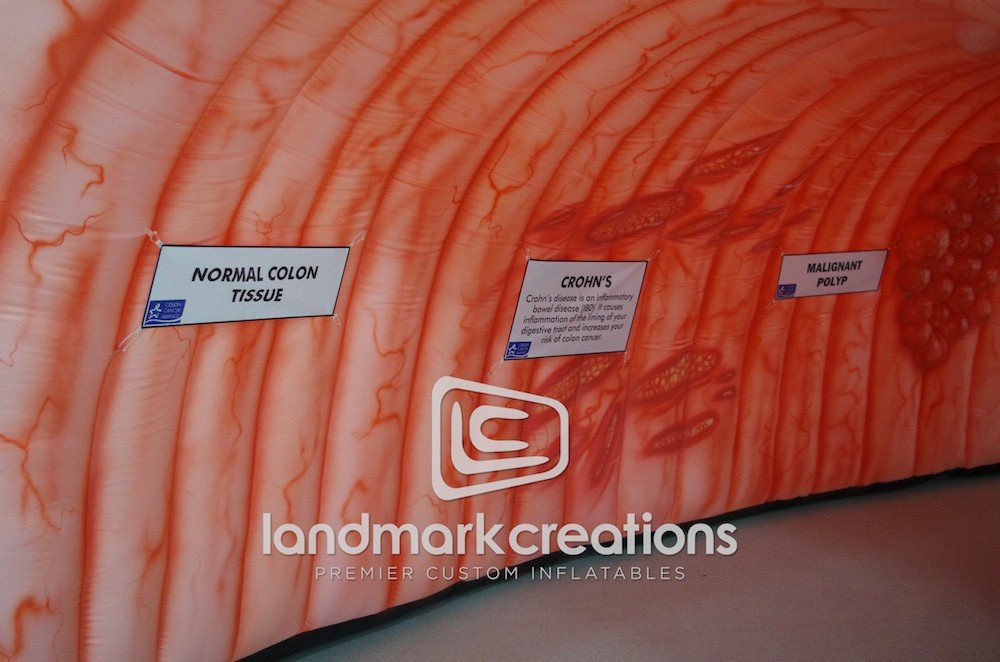 This inflatable colon for the Colon Cancer Alliance spurs discussion and increases colon cancer awareness at community events. With descriptive banners placed next to 3D disease replicas inside the colon, people can easily understand issues related to colon health.