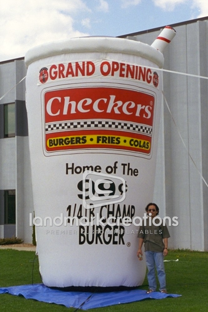 Need a fun way to increase traffic and profits to your QSR? This massive inflatable drinking cup designed for Checkers Drive-In Restaurants promotes the Checkers brand and increases restaurant sales.