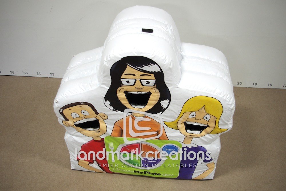 The Center for Nutrition Policy and Promotion, an organization of the U.S. Department of Agriculture uses this inflatable 'Choose Your Plate' toss to educate children about nutrition and healthy eating.