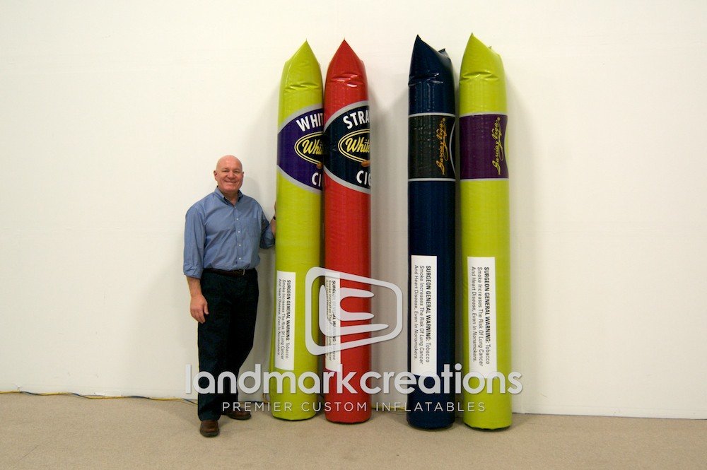 White Owl Cigars generates consumer interest with inflatable product replicas of their American-made cigars. Inflated at retail locations and convenience stores, these colorful cigars influences consumers to purchase their products.