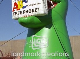 Manufactured homes retailer, Clayton Homes, uses this massive inflatable dinosaur mascot to get attention & increase foot traffic at their home centers in Waco, Texas.