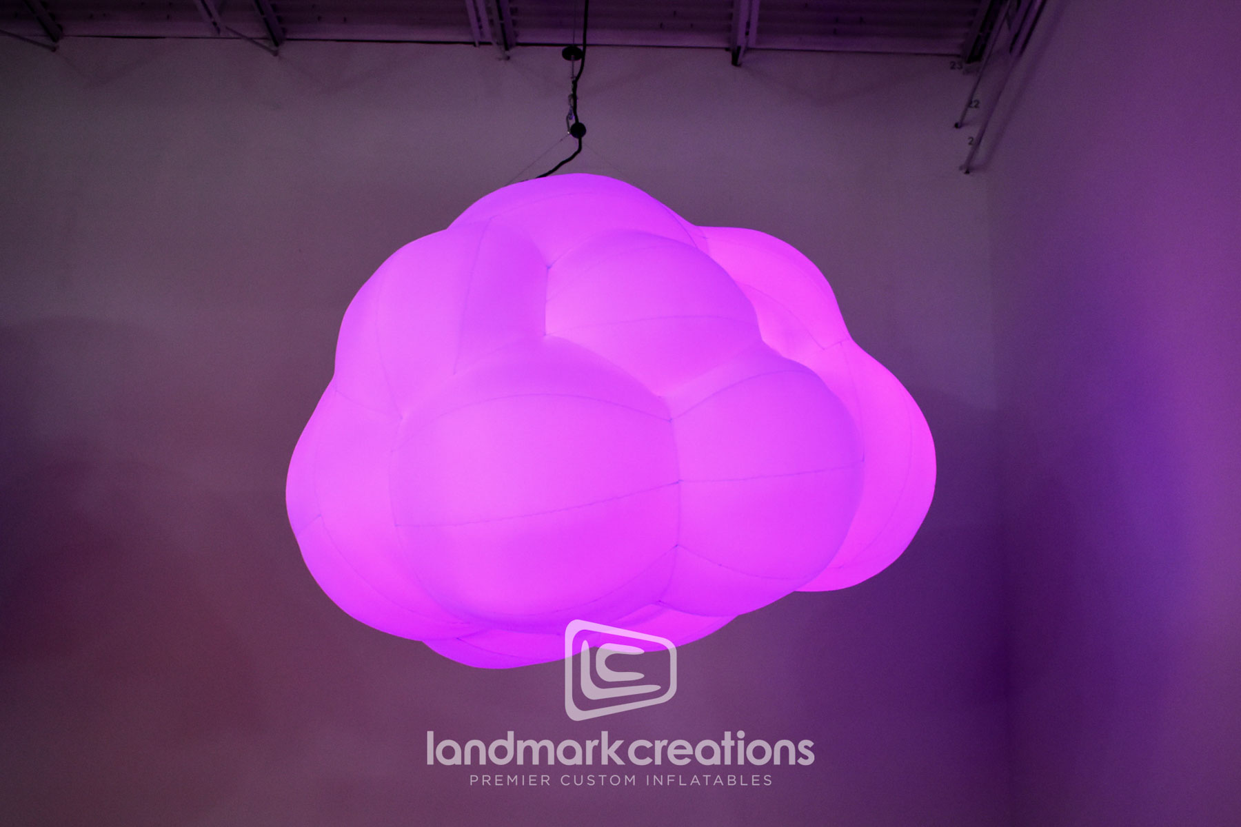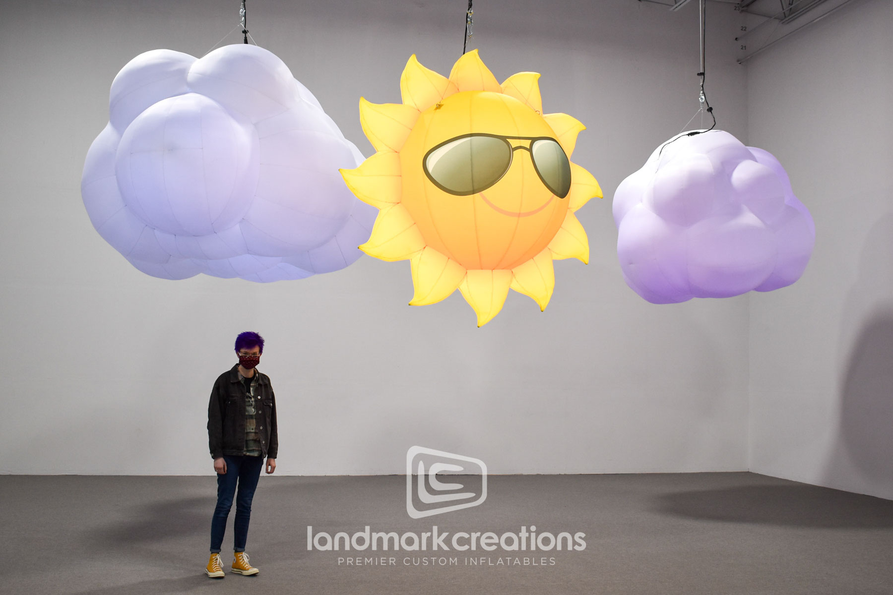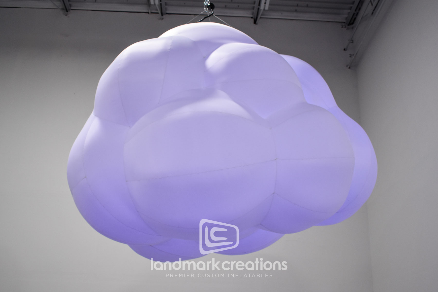 This custom inflatable installation, designed for Canadian Tire in London, Ontario, elevates the visual appeal of their patio display. With soft, floating clouds suspended above the retail space, this hanging feature transforms the Canadian equivalent of a Home Depot into a unique atmospheric experience. The Cloud Cluster demonstrates our capability to create immersive scenic inflatables tailored to various environments, blending seamlessly into any setting while enhancing the overall ambiance.