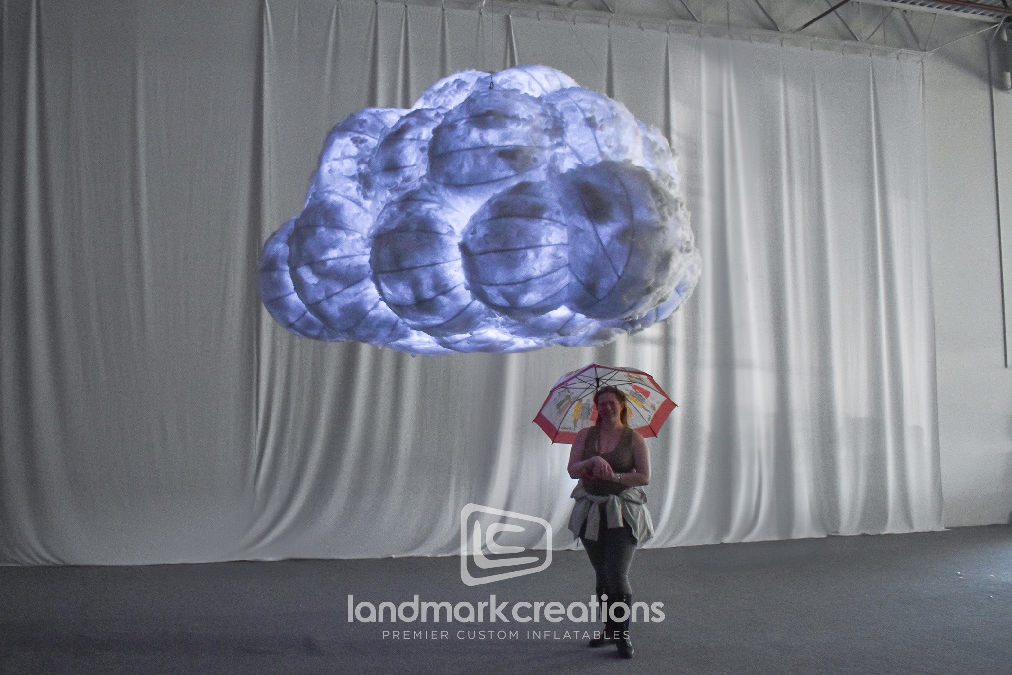 A Wright World incorporated our custom cloud inflatable into their stage production, featuring programmable DMX lights that react to live sound. This suspended set piece added an immersive element to their tour performances, delivering both visual and atmospheric impact. Compact and lightweight, it was designed for ease of transport while maintaining its striking presence on stage.