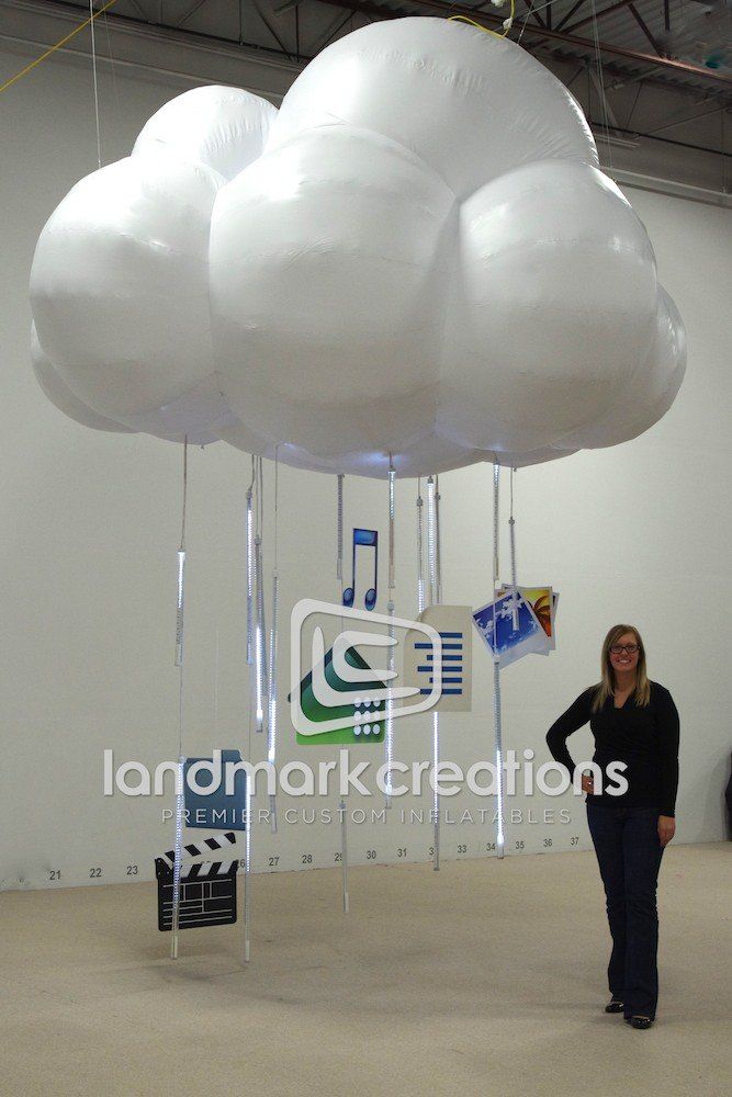 High-performance hardware and software solutions company Code 42 Software suspends a giant inflatable cloud with LED motion lights and graphics that sway like a mobile in their trade show booth to attract attention and promote their cloud-based software solutions.