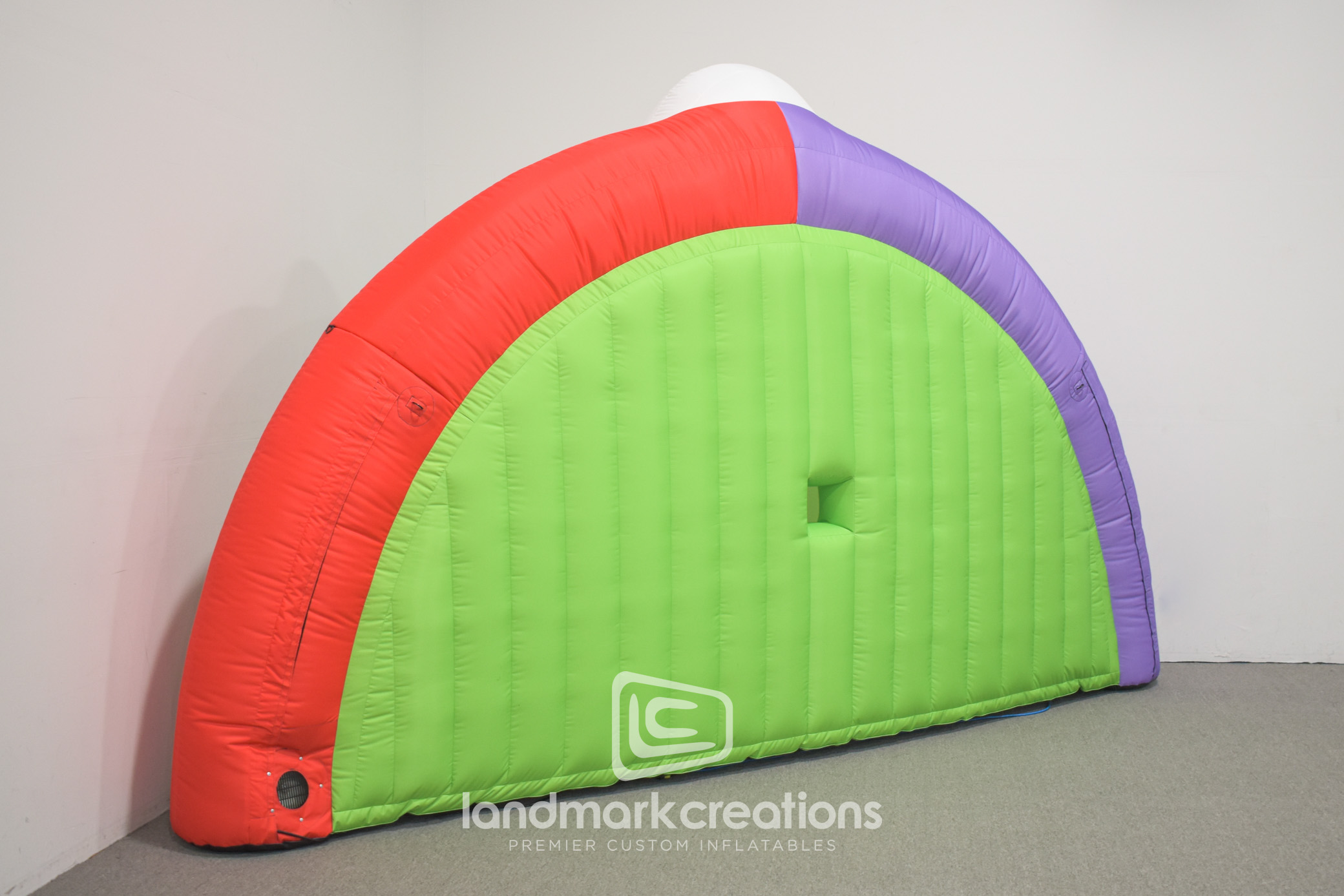 The 'Cocomelon Partytime' inflatable arch, crafted for Sparks, serves as a vibrant backdrop for stage productions and tours. Its colorful design enhances performances, creating an engaging atmosphere for audiences.