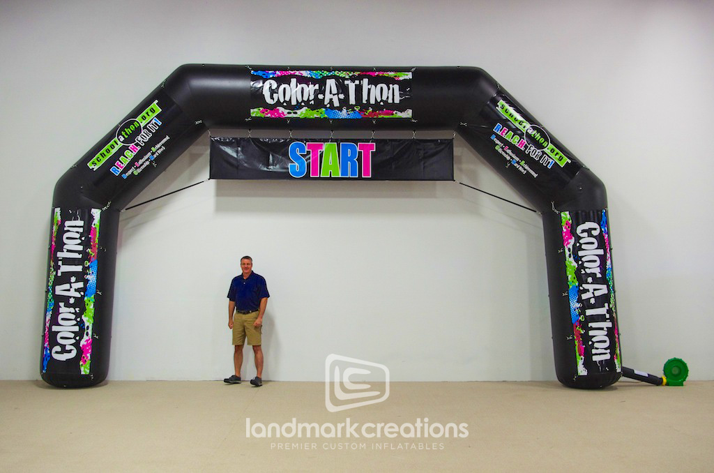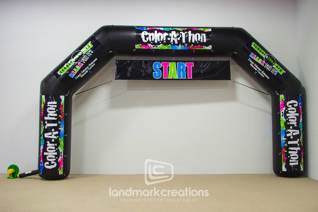 The Color-A-Thon Arches, created for The Chip Shoppe, is a vibrant and eye-catching inflatable arch that provides a perfect gateway for events. This custom inflatable serves as a striking entrance, drawing attention while creating a memorable first impression for participants. With its colorful design, it enhances the atmosphere, making it ideal for any fun run, fundraiser, or event looking to stand out.