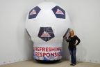“We wanted to convey our 'money-saving' message; what better way than a 14-foot-tall inflatable booth with money flying around in it?”