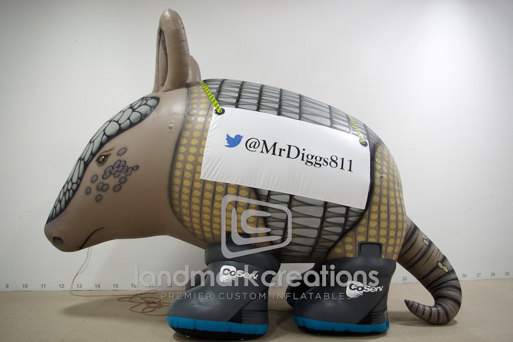 CoServ, an energy solutions company, inflates their custom-designed armadillo character to promote safe digging. Mr. Diggs, as they like to call him, raises awareness and reminds community members to call 811 before they dig.