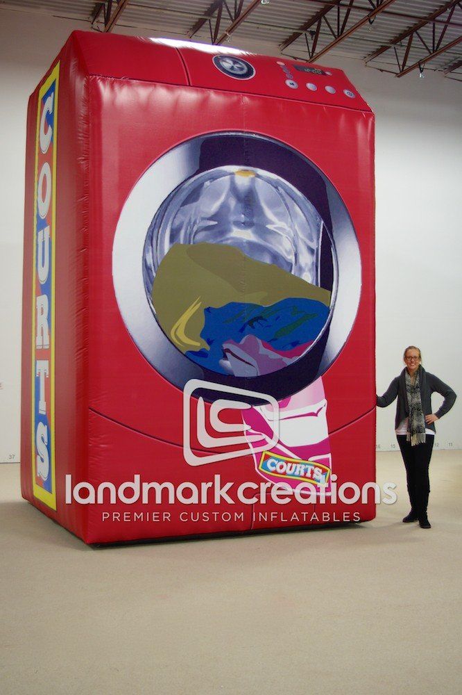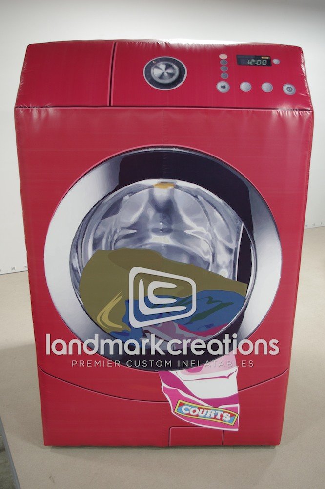 El Salvador based retailer Courts promotes its 700+ furniture, appliances and electronics retail locations with a giant inflatable washing machine. Giant inflatables are proven to attract consumers and increase store foot traffic during and after promotional events.