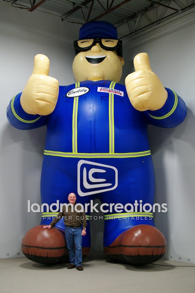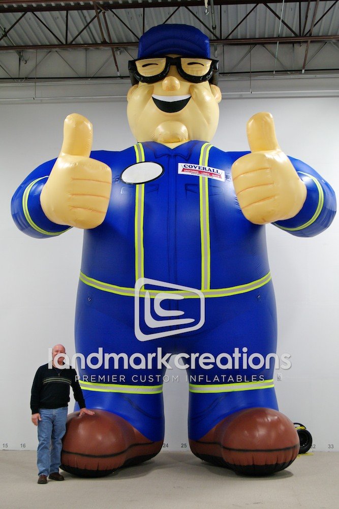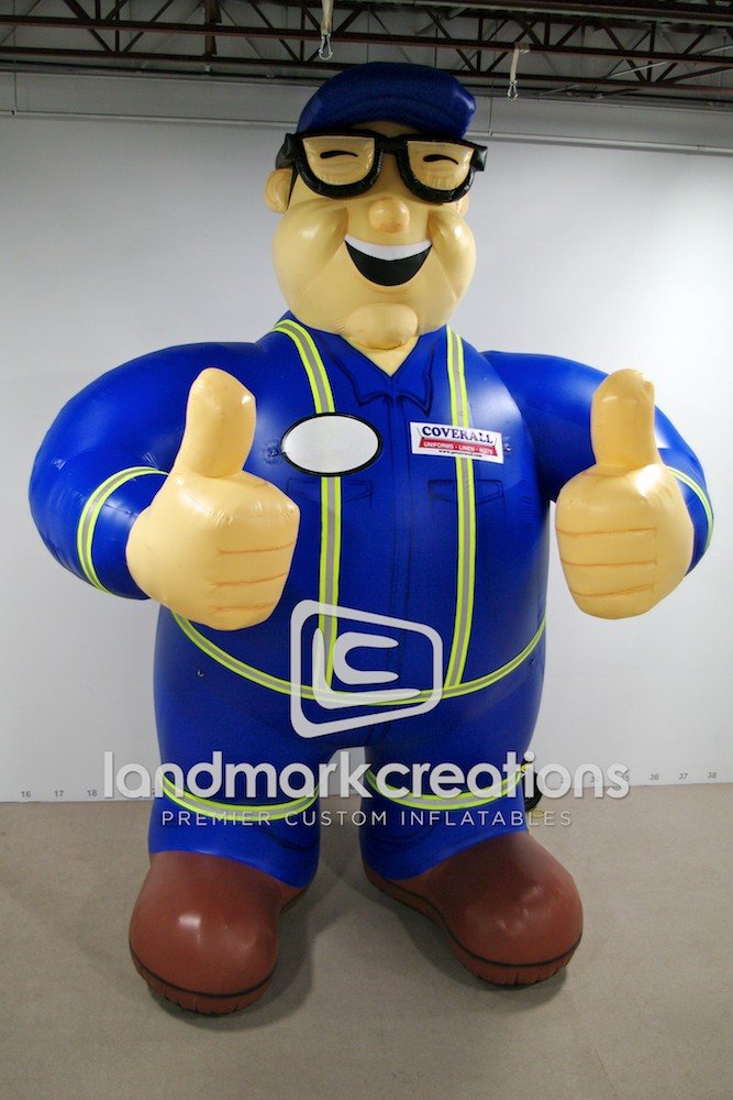 A well deserved thumbs up indeed! This cold air inflatable mascot for Coverall, standing at 20 feet tall, grabs attention at retail promotions.