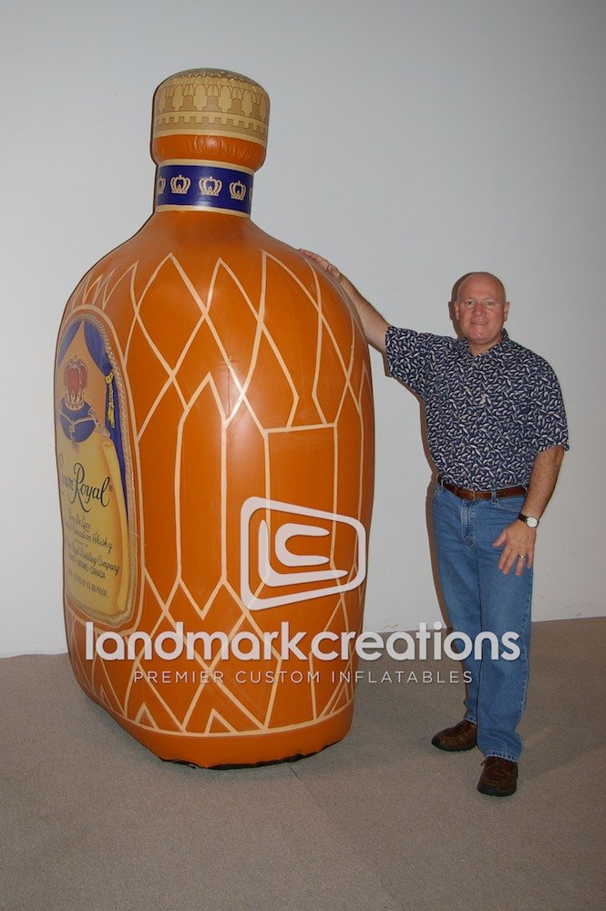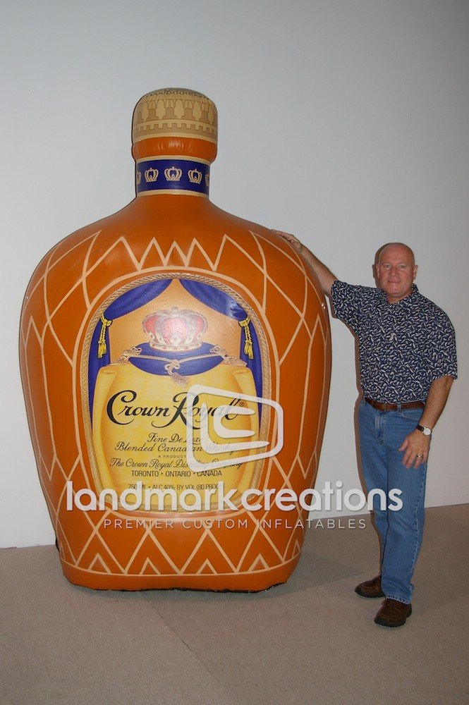 Crown Royal's marketing team uses custom inflatable replicas of their whisky bottle to attract consumers at event promotions.
