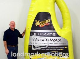 Dawn uses this 20-foot inflatable replica of their Dawn Plus with Power Scrubbers dish soap to advertise outdoors at retail locations, including grocery stores and supermarkets.