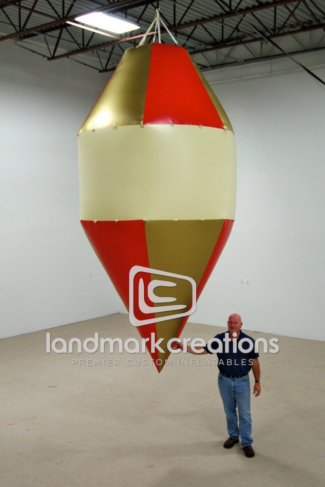 This inflatable ornament was made to hang above shoppers during the holiday season. Holiday inflatable like this are a great way to get your shoppers in the holiday spirit, and add some sparkle to your business.